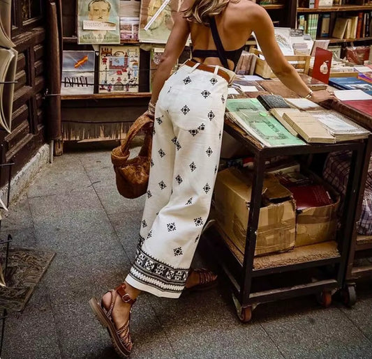 New Fashion Printed Bohemian High Waist Wide Leg Pants for Women